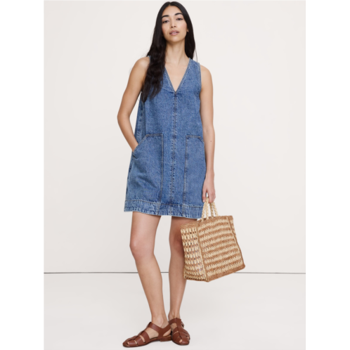 - Our version of the season's pinafore dresses. This sleeveless shift dress is done up in a soft, denim fabric that's just a little heavier than chambray. Style it now on its own with flats or layer over a long-sleeve tee and tights for cooler days.