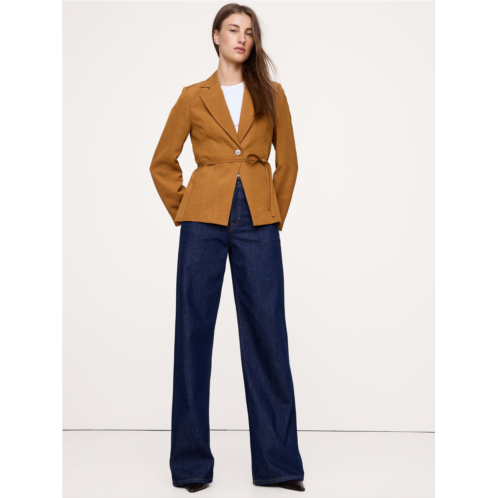- So 90s. We cut this blazer a little shorter and opted for a one-button silhouette with a wraparound belt at the waist to keep it feeling femme. Crafted in a subtly slub-textured fabric that's equal parts dressed-up and at-ease.