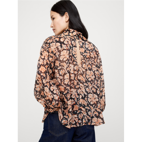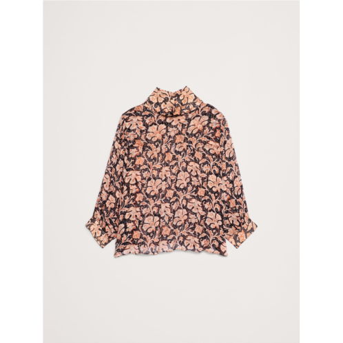 - Deconstructed, reconstructed. We flipped the classic Western shirt to give it a mock-neck silhouette. Here, in lighter-than-air chiffon with subtle, metallic stripes.Semi-Sheer