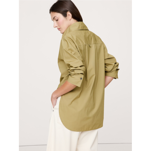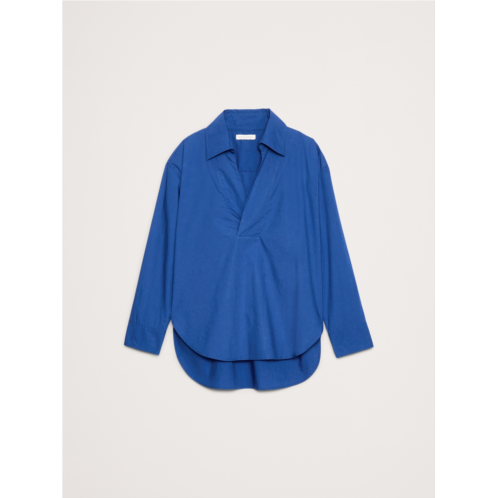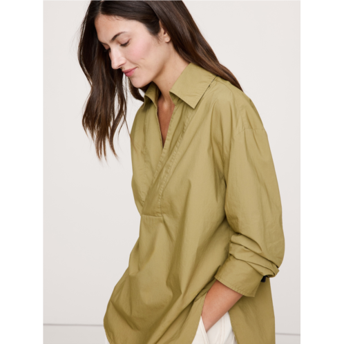 - You love this oversized shirt so much, we had to bring it backthis time with long sleeves and tunic-length. This popover shirt is crafted in our signature cotton poplin. We skipped the buttons, leaving the collar open for an at-ease effect.