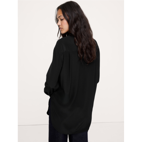 - Cut from our signature silk crepe de chine, this oversized shirt has chest pockets for a utility twist on the classic button-down shirt. Did we mention it's also machine-washable?