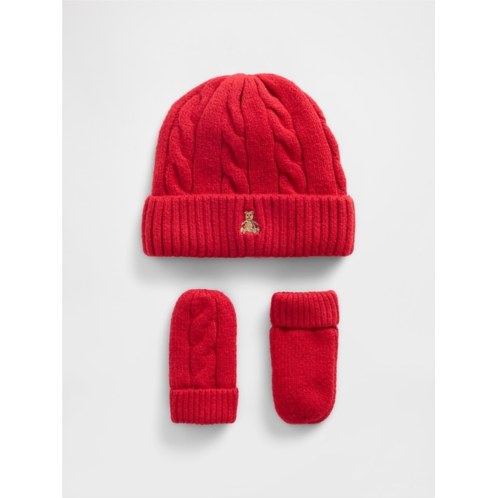 [US] Gap Baby & Toddler CashSoft Cable-Knit Beanie & Mittens Set