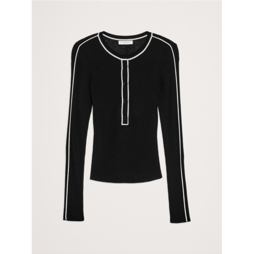 - You can have it all. This incredible cashmere henley uses a featherweight yarn that’s oh-so-softwithout sacrificing warmthand just a little heavier than a t-shirt in weight.Semi-Sheer