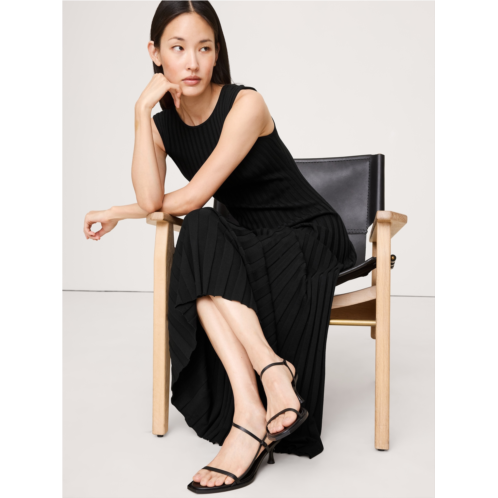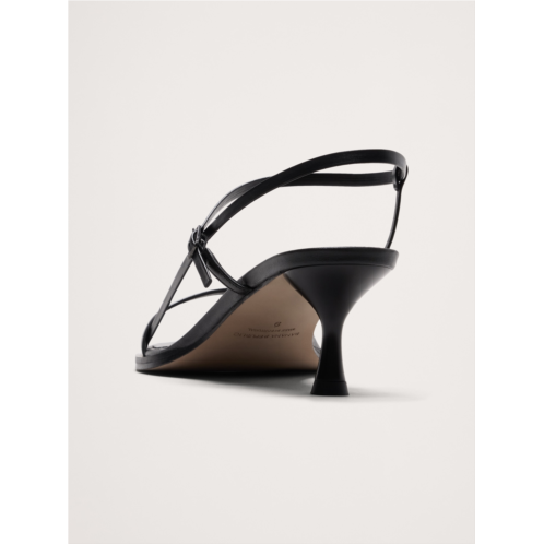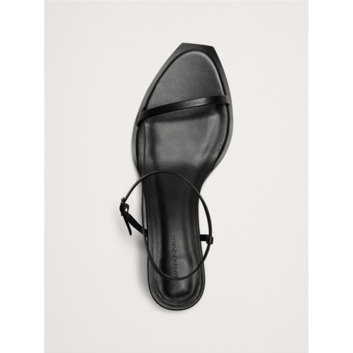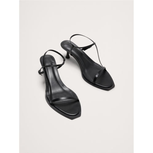 - Set atop a modest kitten heel, these sleek almond-toe sandals are crafted with sleek, Italian leather or satin straps that wrap around the foot and ankle for a secure fit.