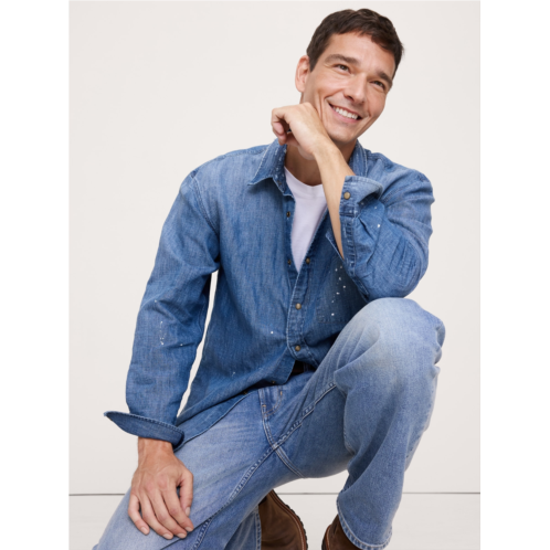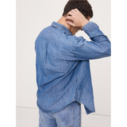 [US] Bananarepublic Relaxed-Fit Paint Splatter Cotton-Hemp Chambray Shirt