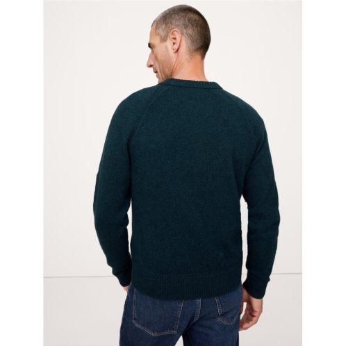 - So soft and perfect for year-round comfort. This classic crew-neck sweater has exposed seams for a rugged look, knitted in our softest Merino wool blend from Italy.