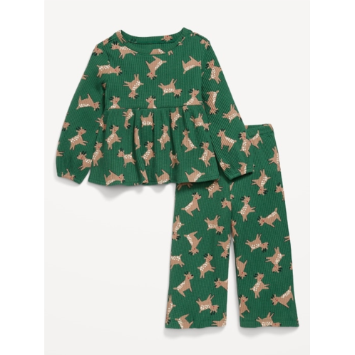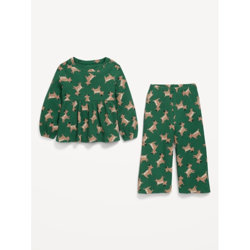 [US] OldNavy Waffle-Knit Peplum Top and Pants Set for Toddler Girls