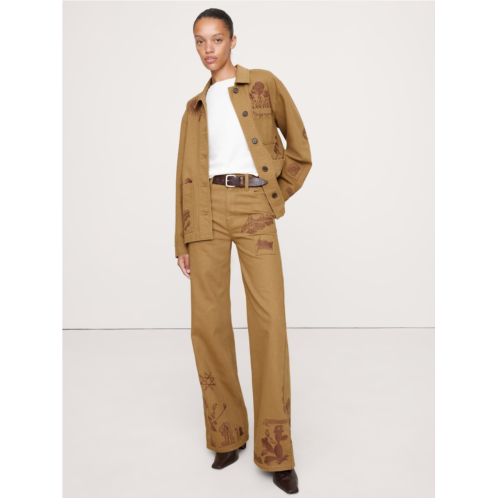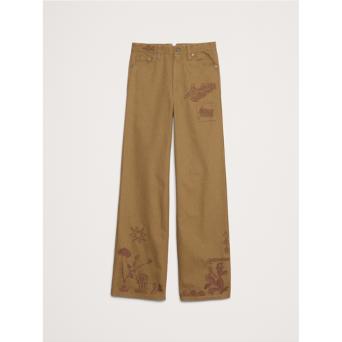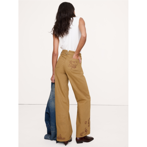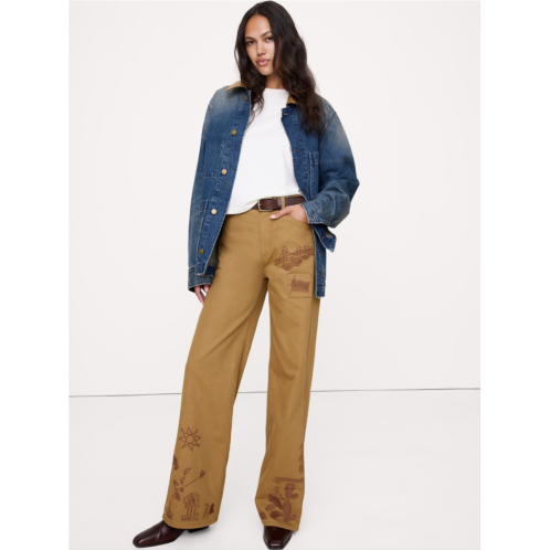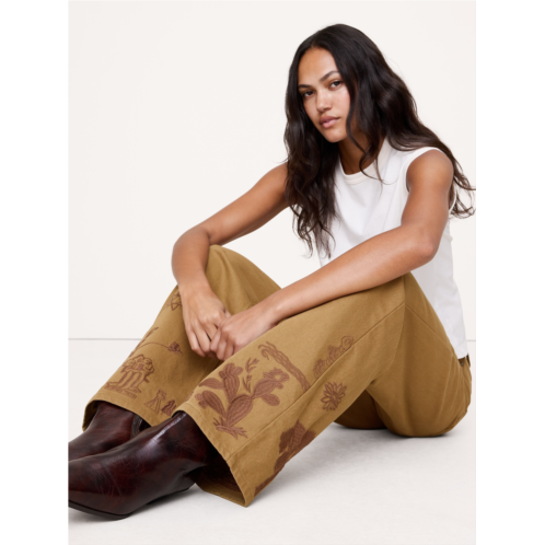 [US] Bananarepublic High-Rise Embroidered Cotton Canvas Relaxed-Straight Pant