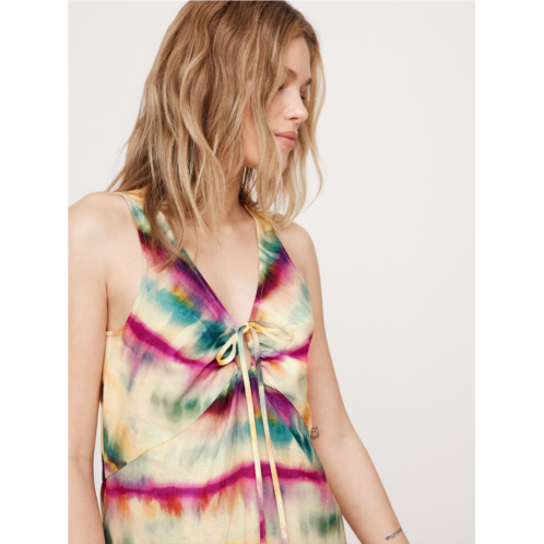 - A timeless, A-line linen dress gets an update with a drawstring keyhole detail at the neckline. Tie it to close the keyhole or tie behind the neck like a halter, in 100% certified-European linen.