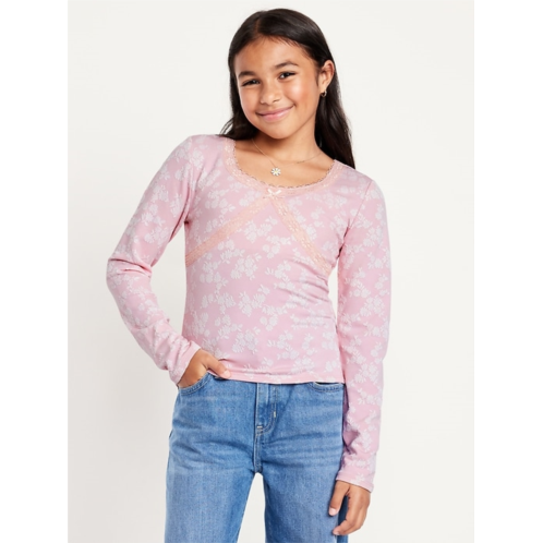 [US] OldNavy Fitted Long-Sleeve Lace-Trim Top for Girls