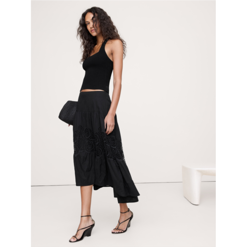 [US] Bananarepublic Cotton & Lace Drop-Waist Tiered Skirt