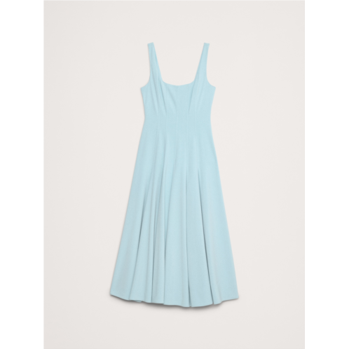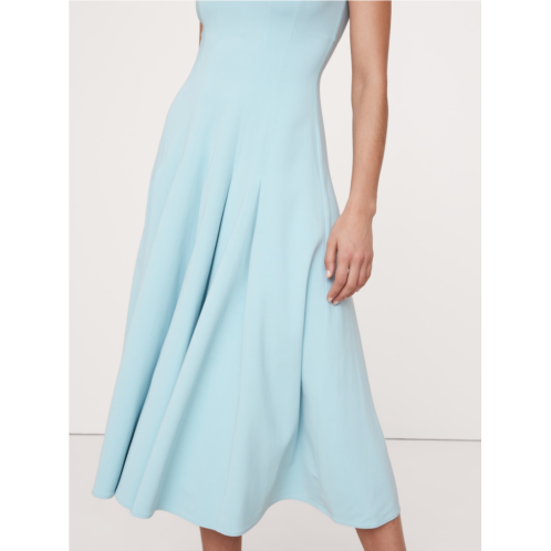 - Crafted from a smooth sateen with subtle stretch, this fit-and-flare dress achieves its silhouette with an intricate paneled construction. Plus, the ankle length looks great with heels or flats.