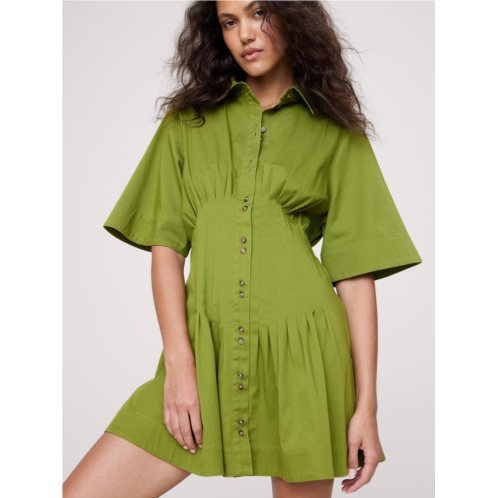 - Deconstructed, reconstructed. This mini dress nods at the season's drop-waist trend with corset-inspired pleats at the waistin our 100% cotton poplin.