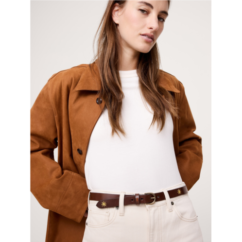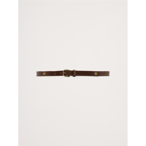- A classic leather belt with charming embroidered accents.