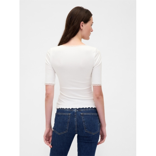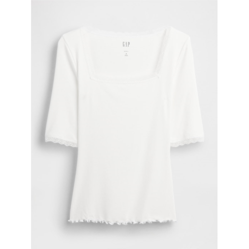 [US] Gap Modal Rib Lace-Trim Square-Neck T-Shirt