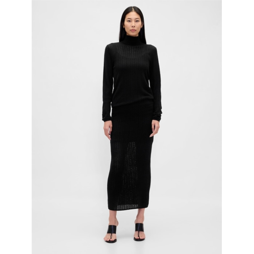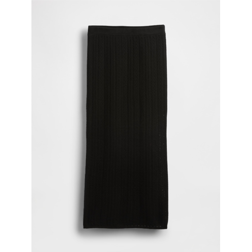 - Soft nylon-wool blend, pointelle knit maxi skirt.