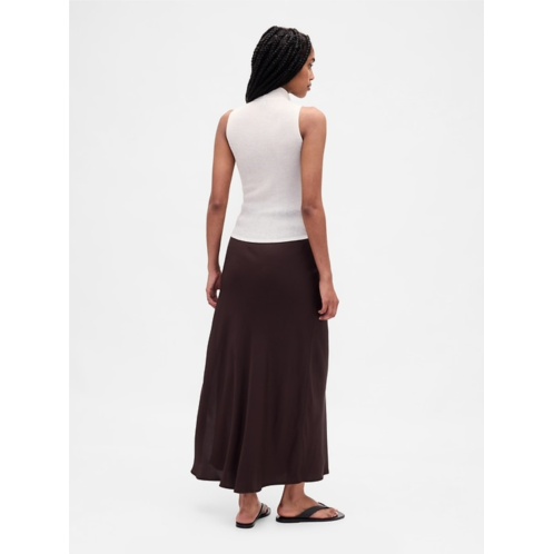 - Smooth woven twill bias-cut easy maxi slip skirt.
