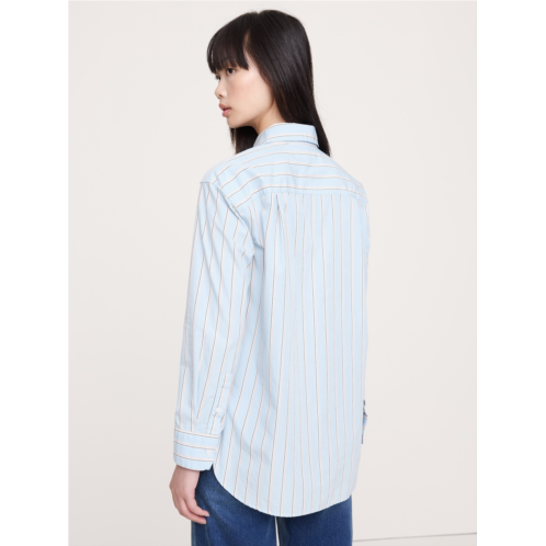 - Back and better than ever. We updated the fit on our best-selling Oversized Shirt by taking it in slightly at the shoulders, waist and sleeves to create the ideal, effortless button-down top in premium 100% cotton poplin.