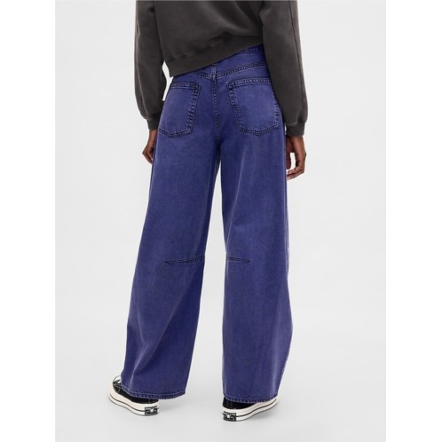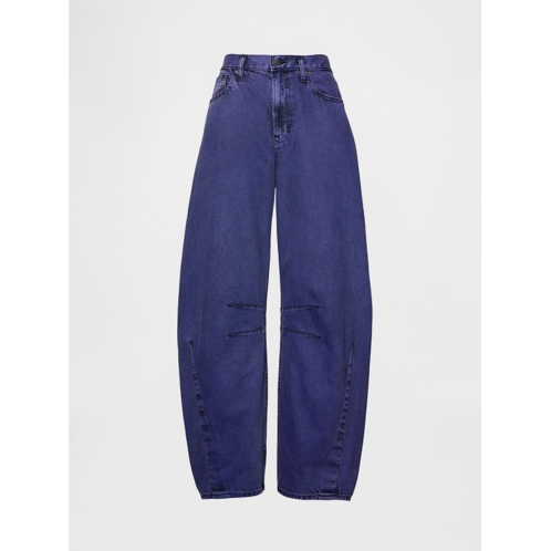 -Look:A classic five-pocket barrel jean in a iris blue wash.