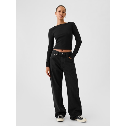 - Sits below the waist with a longer rise. Relaxed through the hip & thigh. Loose, straight leg.