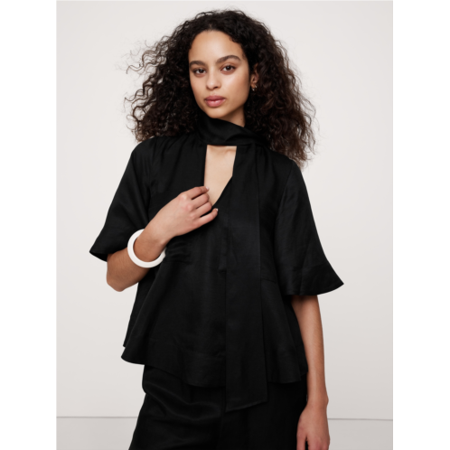[US] Bananarepublic Viscose-Linen Tie-Neck Top