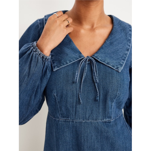 [US] OldNavy Long-Sleeve Fit & Flare Collared Jean Mini Dress