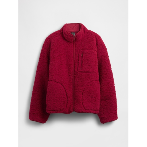- Soft sherpa and water-repellent quilted knit reversible jacket. In a relaxed fit.