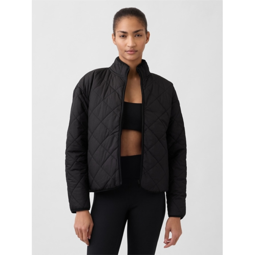 - Soft sherpa and water-repellent quilted knit reversible jacket. In a relaxed fit.