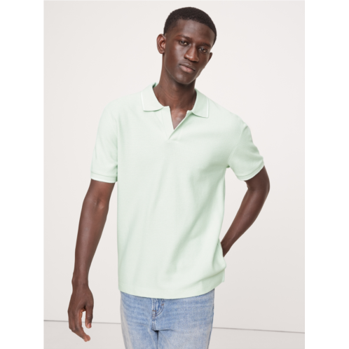 - We love a polo. This one has an easy fit and is cut with a fabric we love for its zig-zag texture. Looks great with linen shorts, jeans, chinos…
