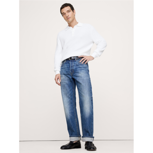 [US] Bananarepublic Textured Cotton Long-Sleeve Sweater Polo