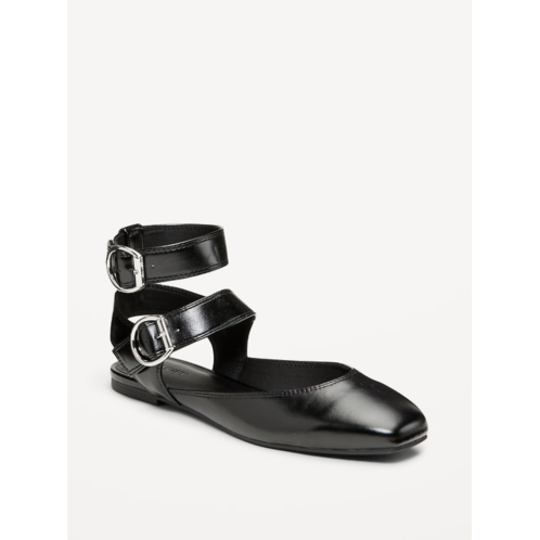 [US] OldNavy Faux-Leather Double Ankle-Strap Flats for Women