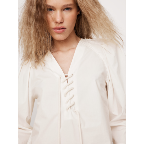 - We cut this easy top with voluminous sleeves and a lace-up front placketin our premium 100% cotton poplin.