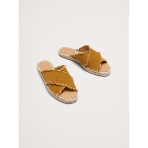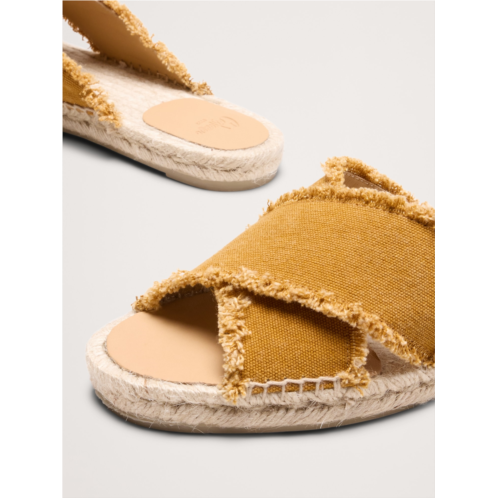 - Classic, crossover sandals constructed in the way of traditional alpargatas with organic cotton canvas, leather lining, and braided jute insoles.