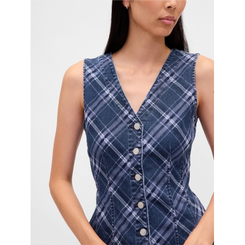 [US] Gap Plaid Denim V-Neck Mini Dress