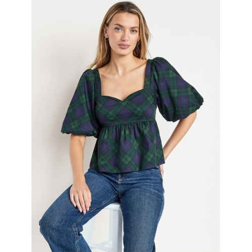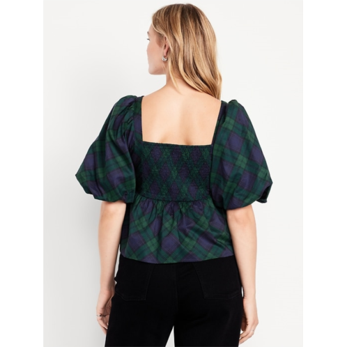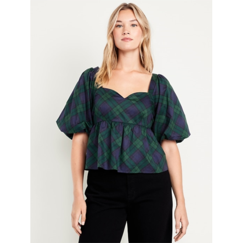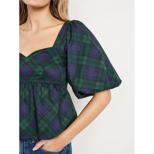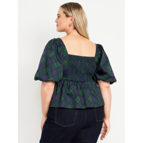 [US] OldNavy Puff-Sleeve Plaid Poplin Peplum Top