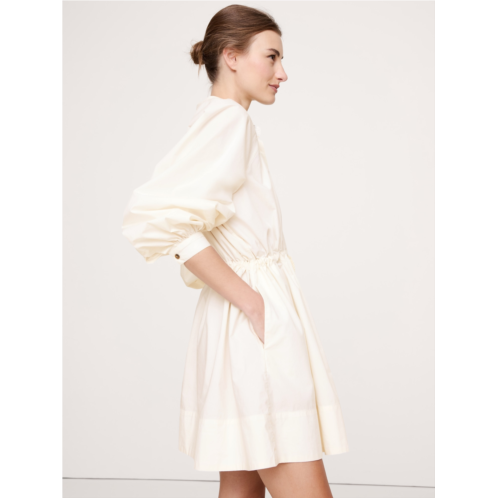 - We're loving cotton poplin right now (and always). This mini dress nods at the season's volume-sleeve trend, fitted with shirtdress styling and a utilitarian drawstring at the waist.
