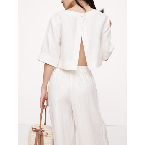 - We love an easy top, in 100% certified-European linen. The almost-open back and cropped length of this one means it pairs easily with linen skirts, linen shorts, linen pants…all linen, all day.