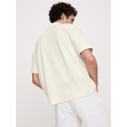 - Pro tip: looks great poolside. This terry polo is made for warm-weather in a toweling fabric with raised stripes.