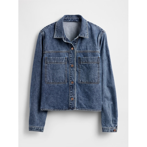 - Authentic non-stretch denim cropped shirt jacket.
