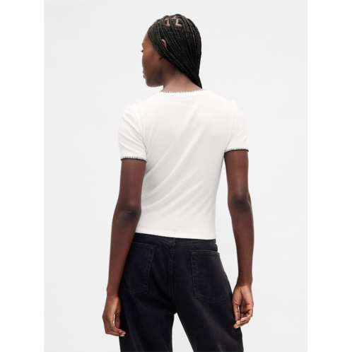 - Soft, stretch cotton-modal blend shrunken tee.