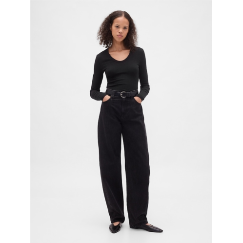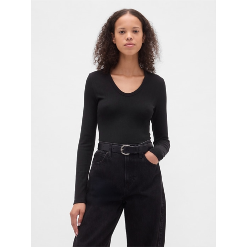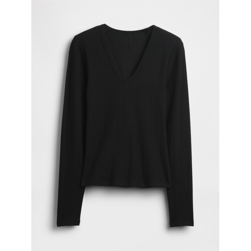 - Soft, stretchy cotton-modal blend sheer ribbed knit T-shirt in a slightly cropped length.