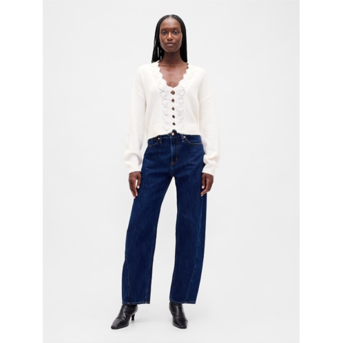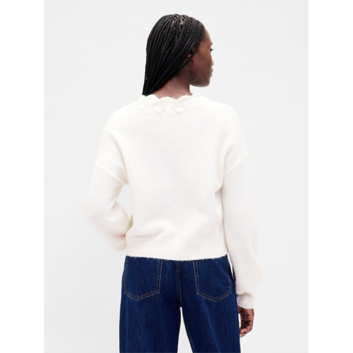 [US] Gap Fuzzy Pointelle Scalloped Crop Cardigan