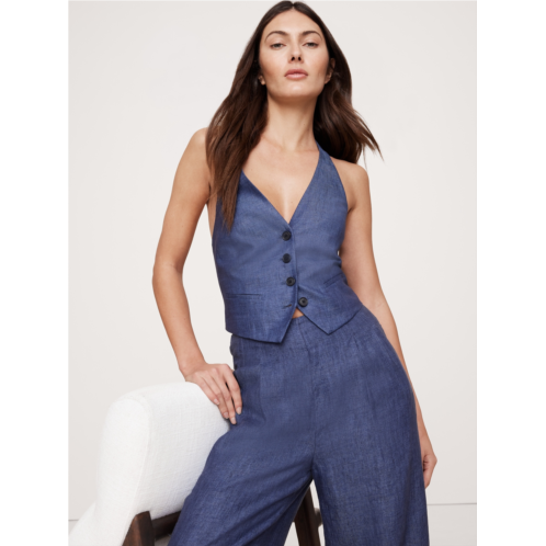 - Made from luxurious linen, we cut this vest with a halter neck that ties at back. Style with linen pants and flat sandals, or dress it up with a linen midi skirt and statement jewelry.