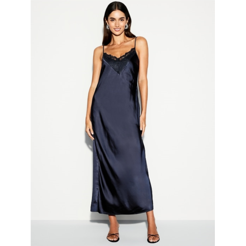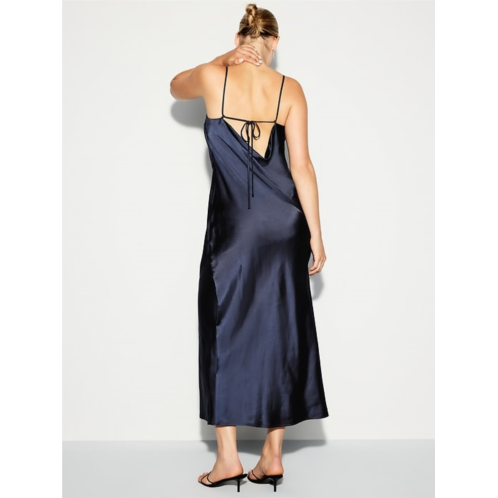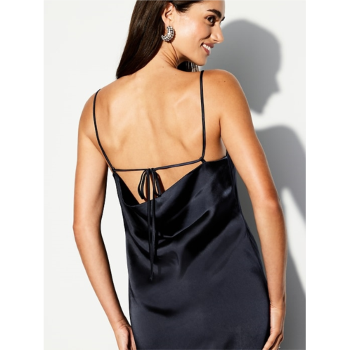 - body-skimming satin is cut on the bias for a perfect fit