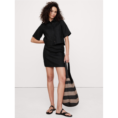 - A little linen mini skirt. This tailored skirt is cut from certified-European flax linen with premium details: a removable belt with covered buckle, darts at the waist, and a full lining in lightweight cotton. Make it a set with the matching cropped shirt.