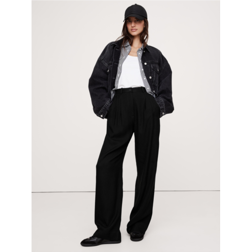 - Meet the high-rise pants we can't stop wearing. We cut these wide-leg pants with a double-pleated front from our premium drapey twilla fabric we love because it strikes the perfect balance between tailored and casual-cool.