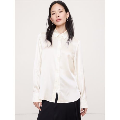 - Our Design team's favorite shirt. We perfected the fit of this shirt so it's relaxed, but never sloppy. This one's done up in our signature silk charmeusea soft fabric we love for its ability to make every occasion feel a little luxurious.