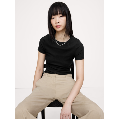 - Our take on the baby-tee, cut from a soft and oh-so-stretchy ribbed knit.