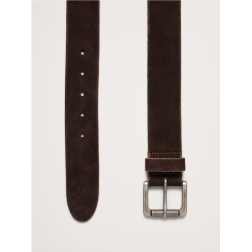 - A belt with character, this gorgeous Italian nubuck leather belt has a sturdy, suede-like finish.