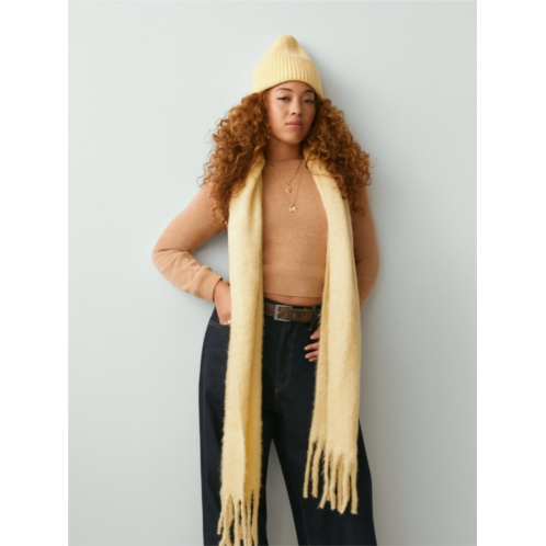 - Soft, brushed wool-blend scarf.